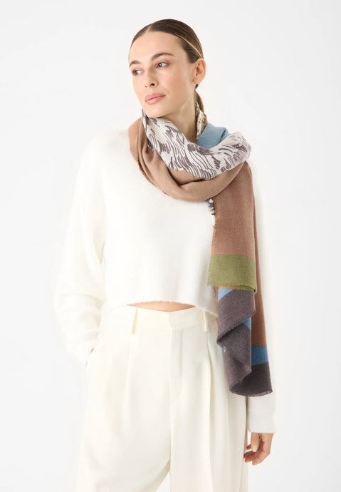 Codello Wool Mix Triangular Scarf in Dark Brown Leopard