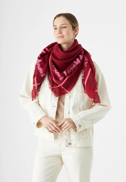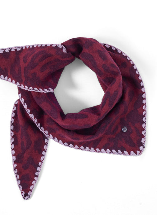 Codello Wool Mix Triangular Scarf in Dark Red Leopard