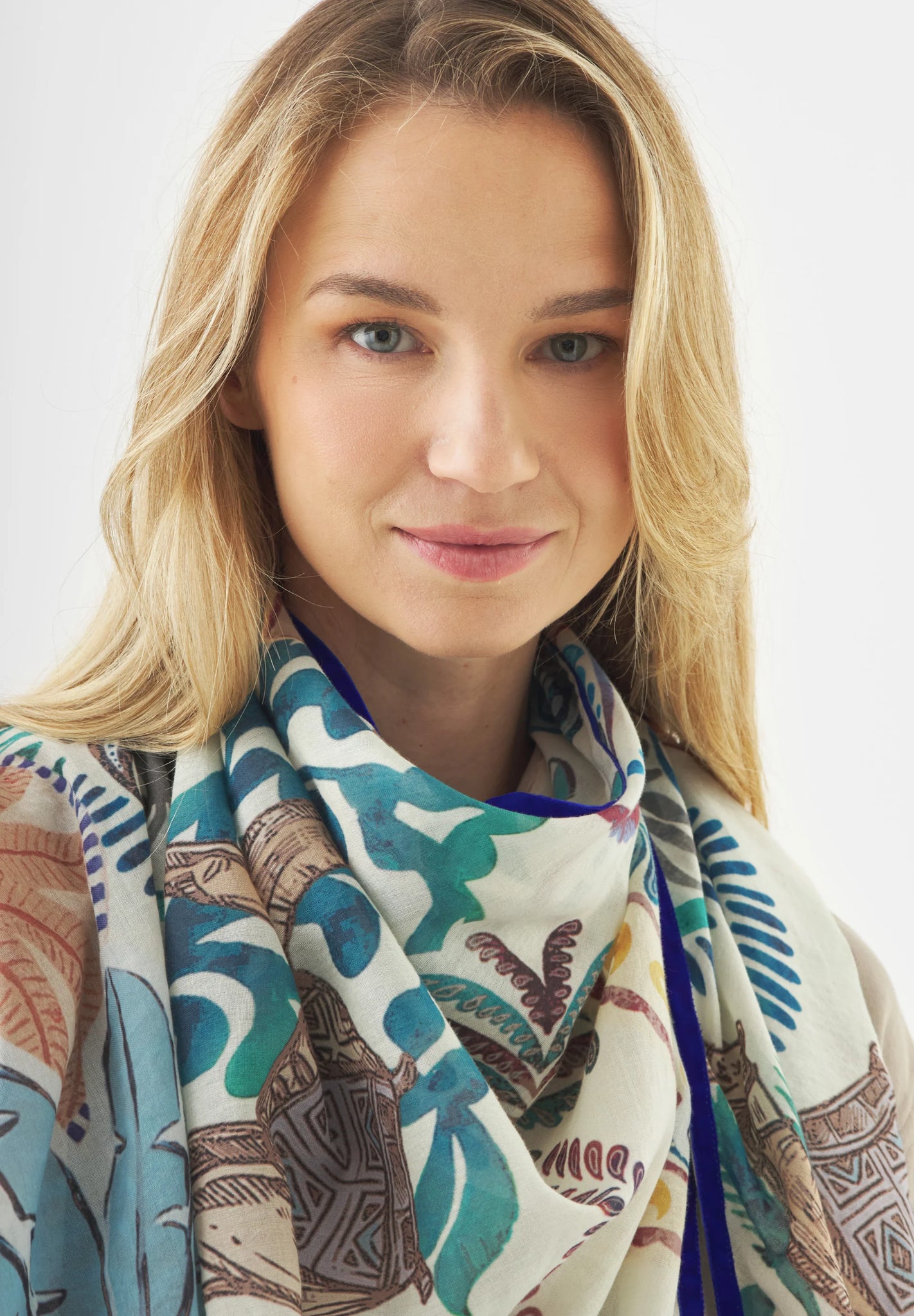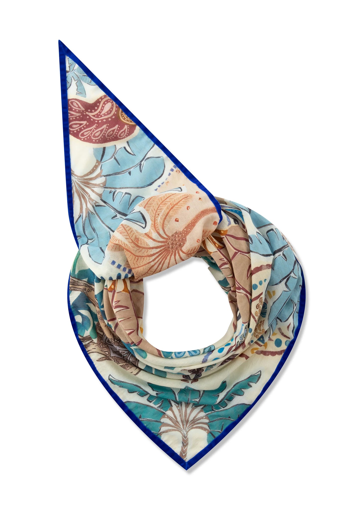 Accessories give every look that certain something. This triangular scarf made of airy cotton becomes a fashion highlight with charming palm motifs and can be casually draped over the shoulders like a cape or poncho. The light, pleasant cotton quality makes it a versatile companion for every day.
