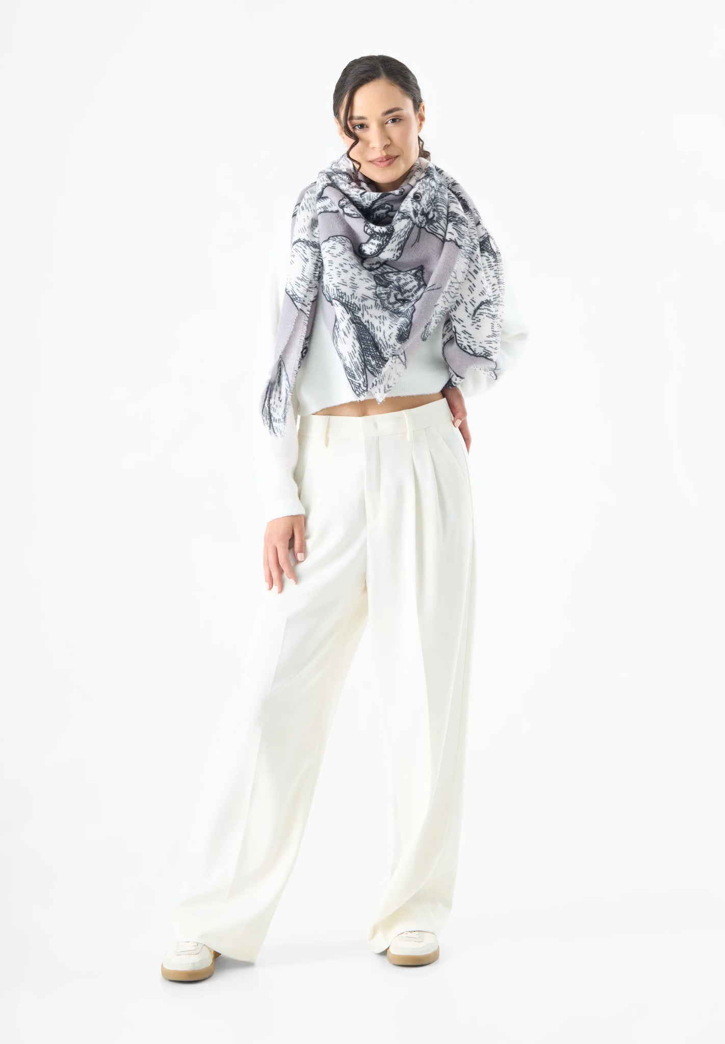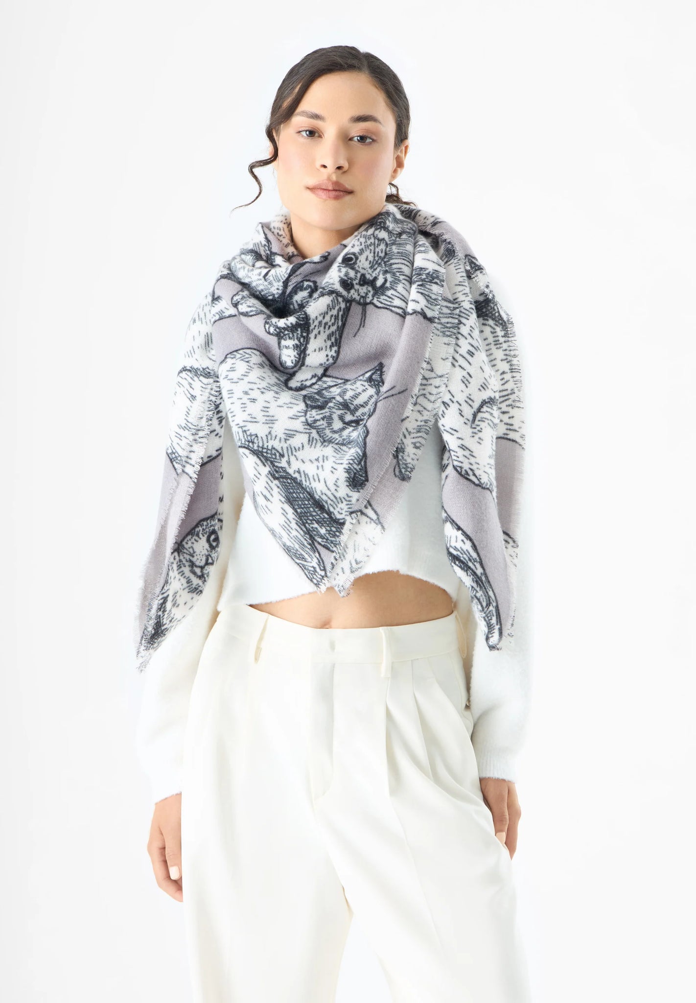This fluffy beige scarf brings a cozy lightness to your look. The soft material ensures a comfortable feel against the skin, while the charming cat motifs add a playful touch. Ideal for relaxed outfits with a hint of charm.