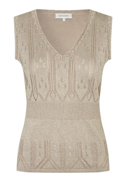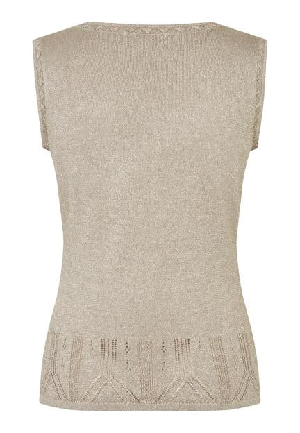 V-neck Cardigan with a matching top in a gold glitter fabric.