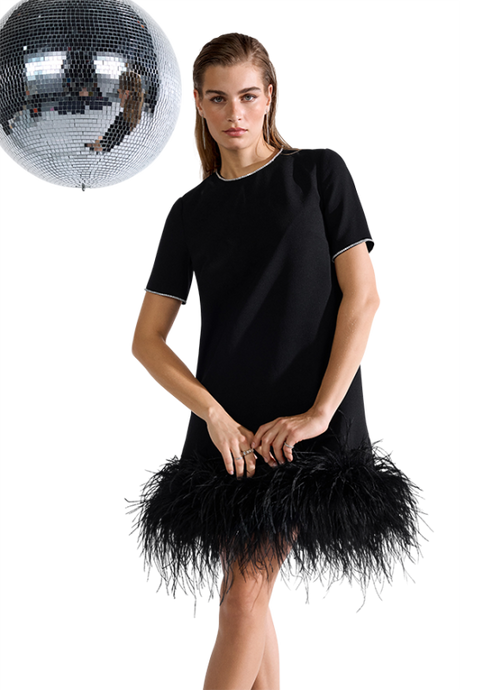 Riani Dress with Feather Hem in Black