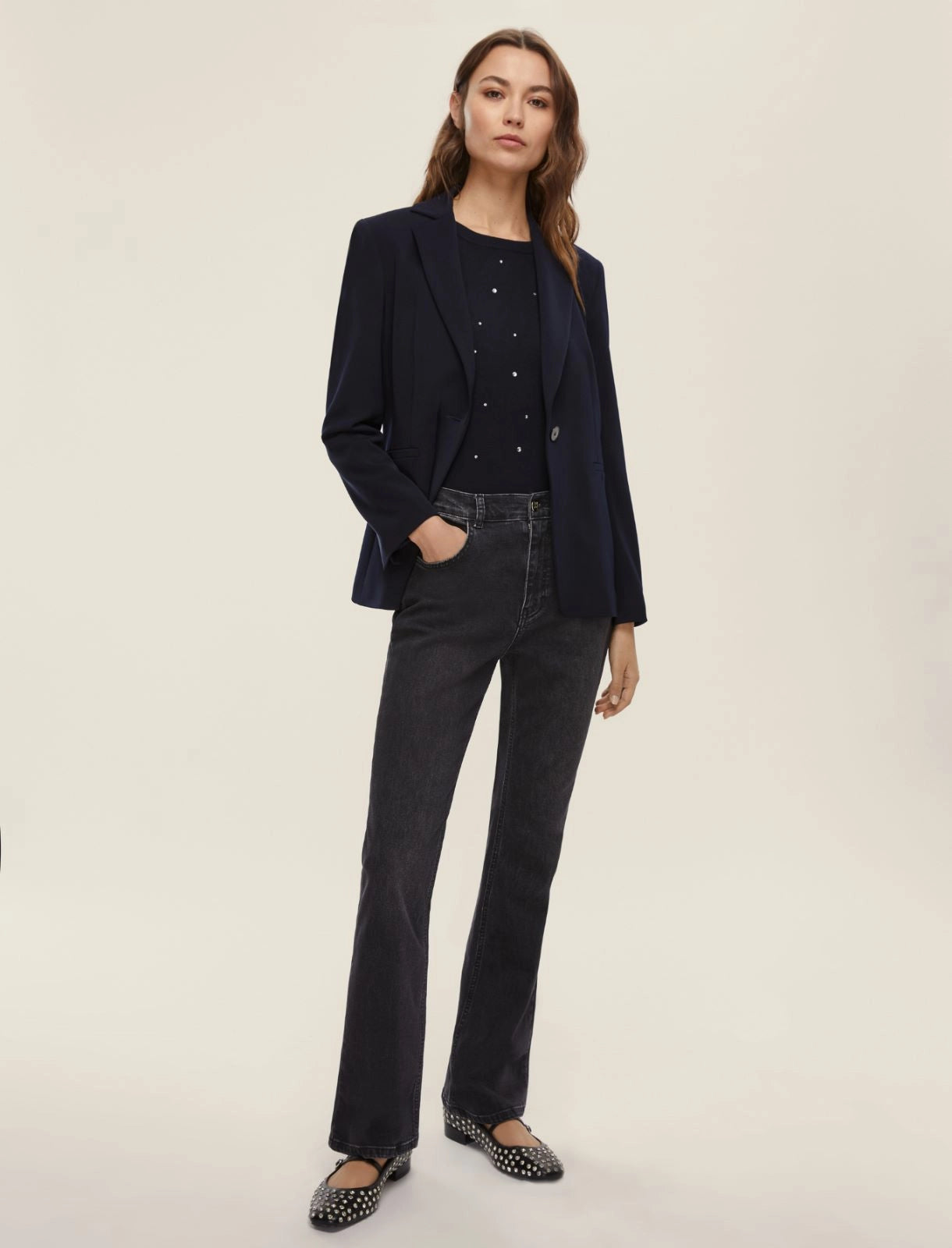 Soft and shiny: the coolest sweater is illuminated with gleaming crystals for a tiny hint of glamour. Wear it with slim-fit trousers and a blazer for an urban yet cool mix.
