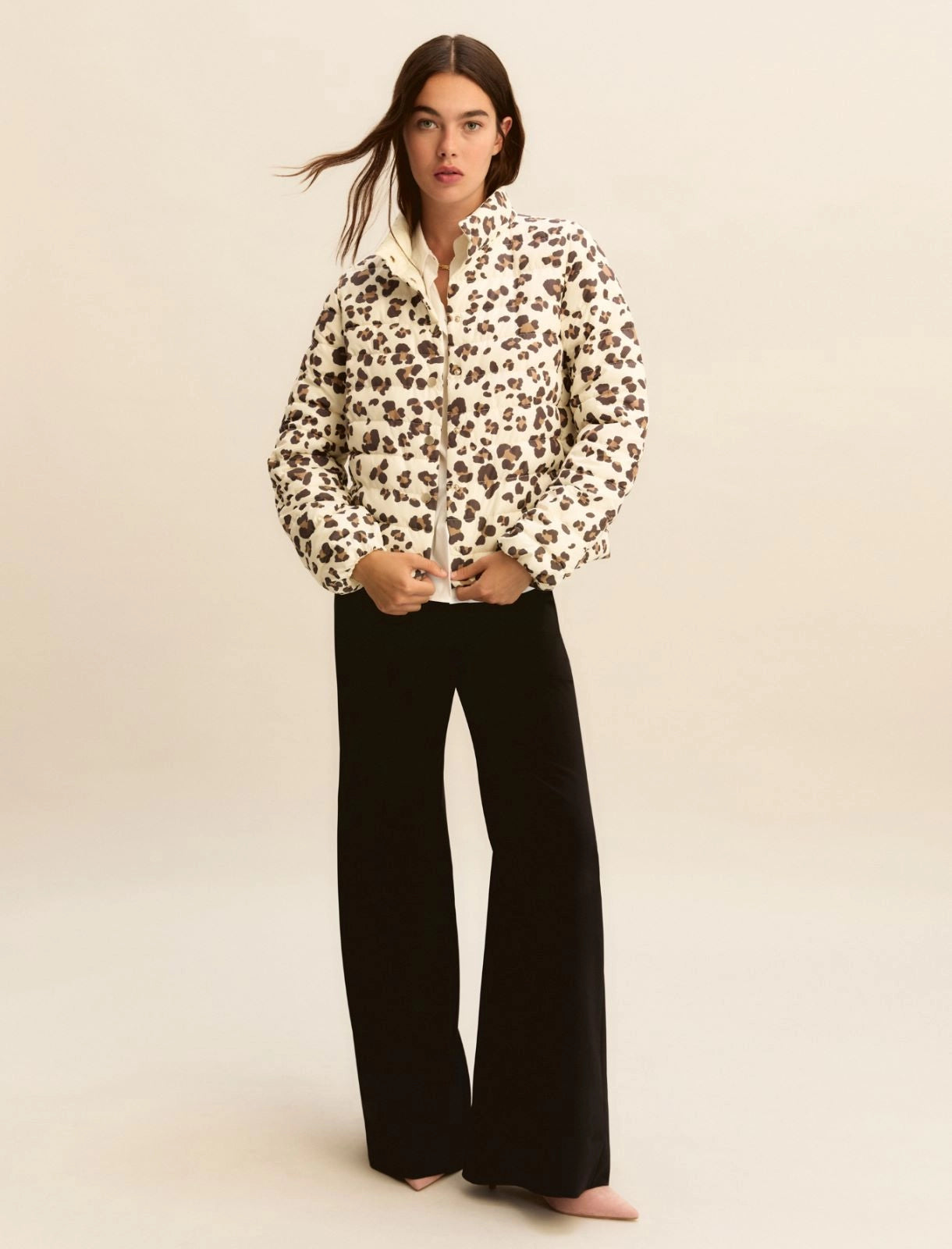 One garment with two styles: don this reversible down jacket for a perfect look, every day. Feel protected at all times, whether at the office or in the city. Down jacket in water-repellent downproof technical fabric Regular cut Mandarin collar and a press-stud fastening In-seam side pockets Elasticated cuffs Comes with a branded down jacket storage bag