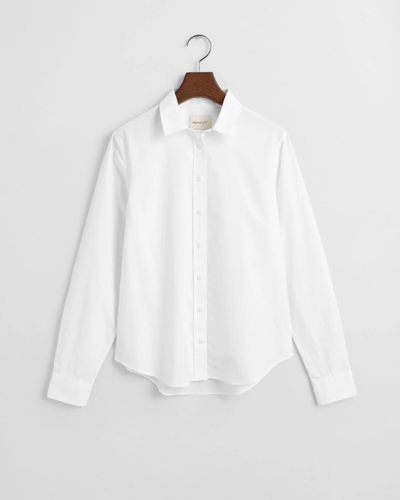 Crafted in a durable poplin weave, this shirt is essential to any preppy wardrobe. Featuring a classic tonal GANT logo embroidered at the chest, the shirt is constructed with a curved hem, regular-fitting cuffs and a point collar. The design is complete with a box pleat and our signature locker loop at the back.