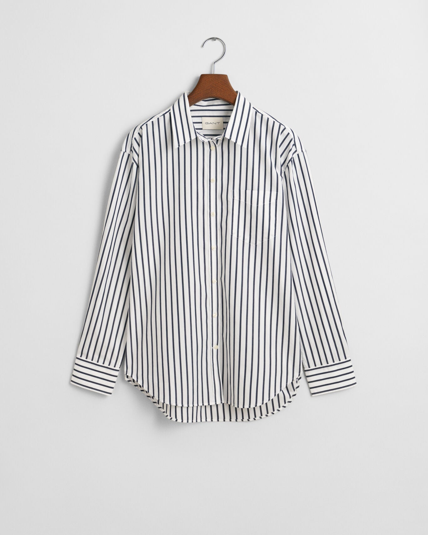 Crafted in a washed cotton poplin fabric for a soft hand-feel, this shirt is designed with yarn-dyed stripes. Delivering a relaxed, smart-casual silhouette, it features a point collar, curved hem, chest pocket and a subtle GANT logo embroidered at the sleeve. This garment is intended for a relaxed fit. For a closer fit, we recommend sizing down.