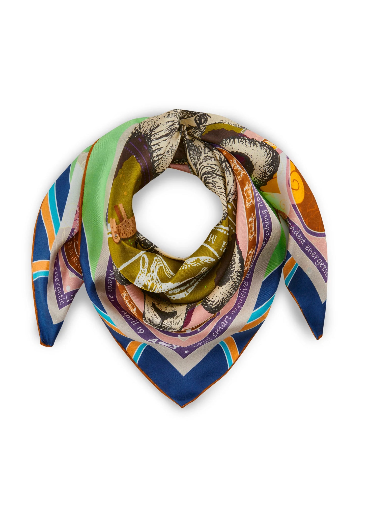 This exclusive silk scarf made from #1 PURE SILK features a detailed zodiac motif in a stunning color combination. The scarf belongs to our new ZODIAK zodiac collection, which combines the fascination of astrology with expressive creativity. Our pure silk scarves and shawls impress with their pleasantly cool and supple soft feel, beautiful sheen, and unique color brilliance. They are produced exclusively in select Chinese silk mills with whom we have long-standing partnerships. This elegant pure silk zodiac scarf comes in a decorative gift box and is perfect as a Christmas present.