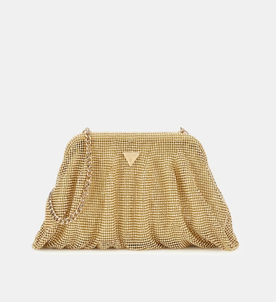 Guess Zalina Mesh Rhinestone Clutch in Gold
