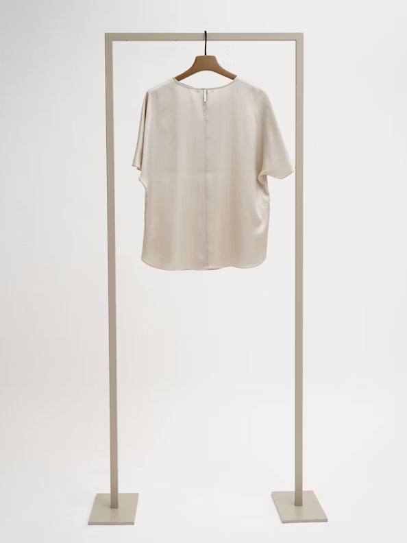 - Herzen Shiny Silk Shirt with Round Neck in Marzipan