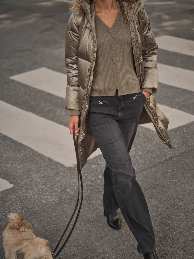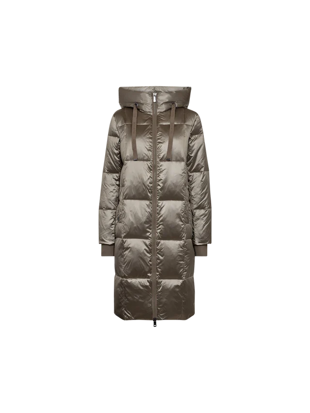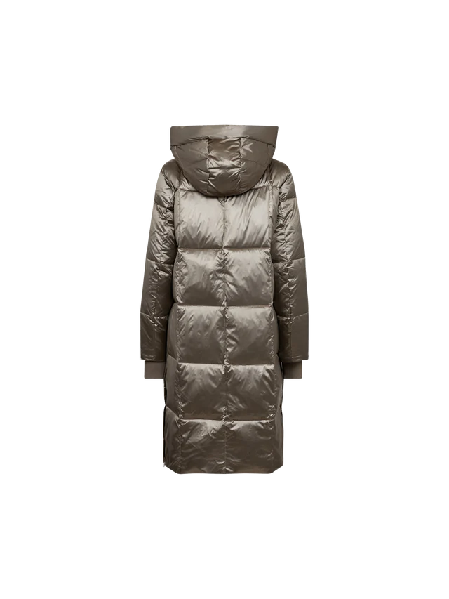 We love this down coat! It’s designed in a cool metallic fabric and crafted from super lightweight down. Finished with a high practical collar, a heavy zipper, and side slits, making the fit extra flexible.