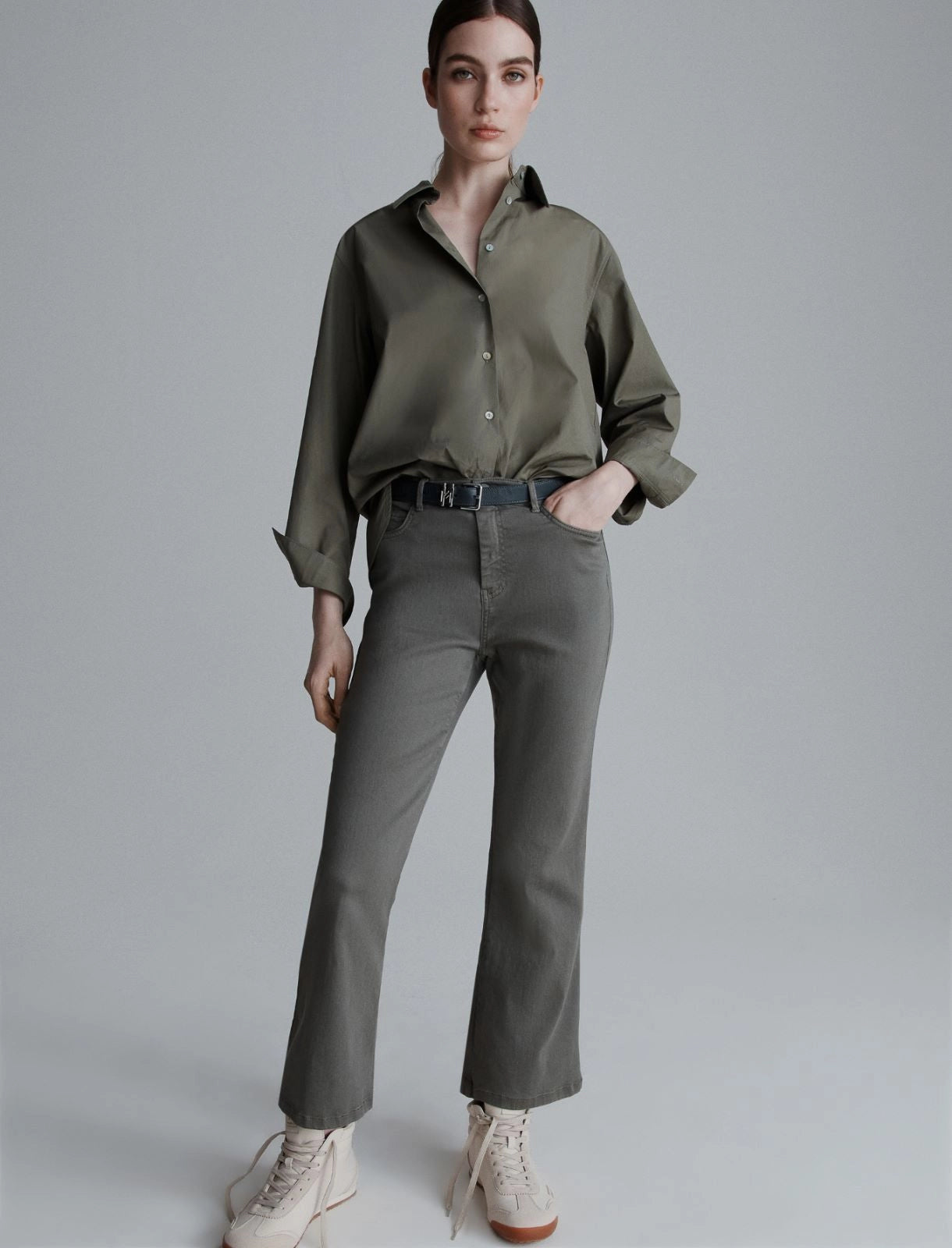 A flared hem and short ankle cut: the recipe for an ever-fashionable silhouette. Wear with relaxed-fit sweaters and sporty ankle boots to mix urban aesthetics with chic touches.