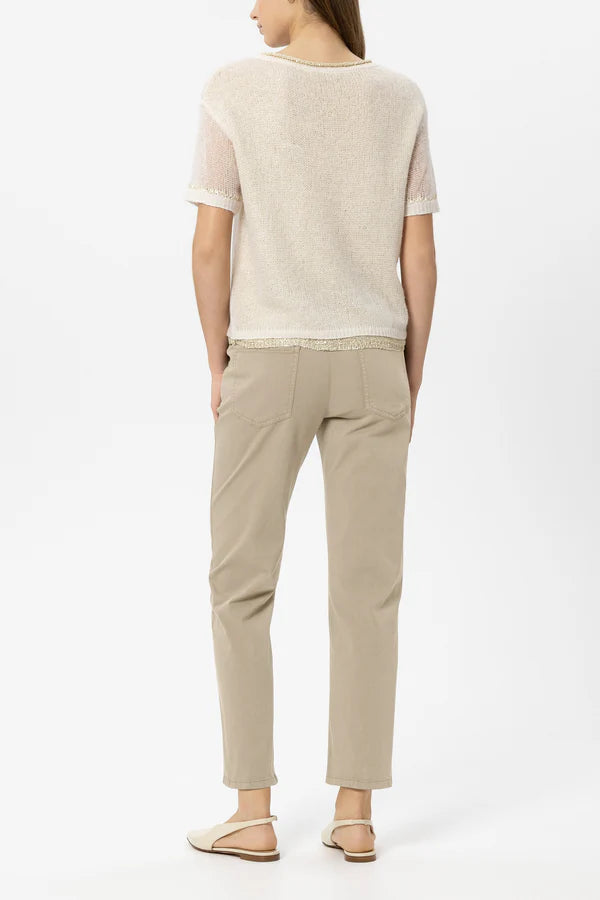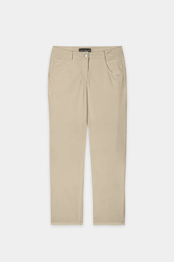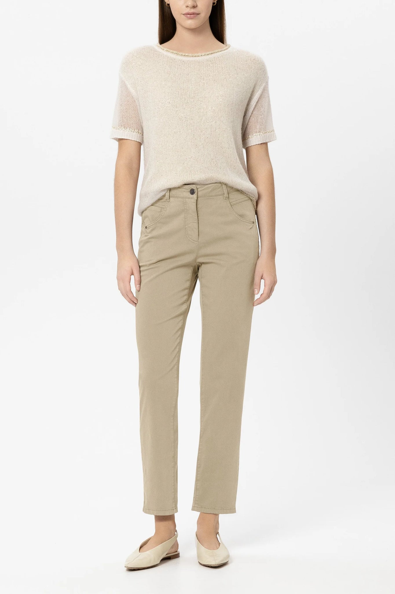 Tapered trousers made from shiny matte colored denim with a comfortable amount of stretch. The trousers come in a classic five-pocket design and feature belt loops and a button and zipper fastening.