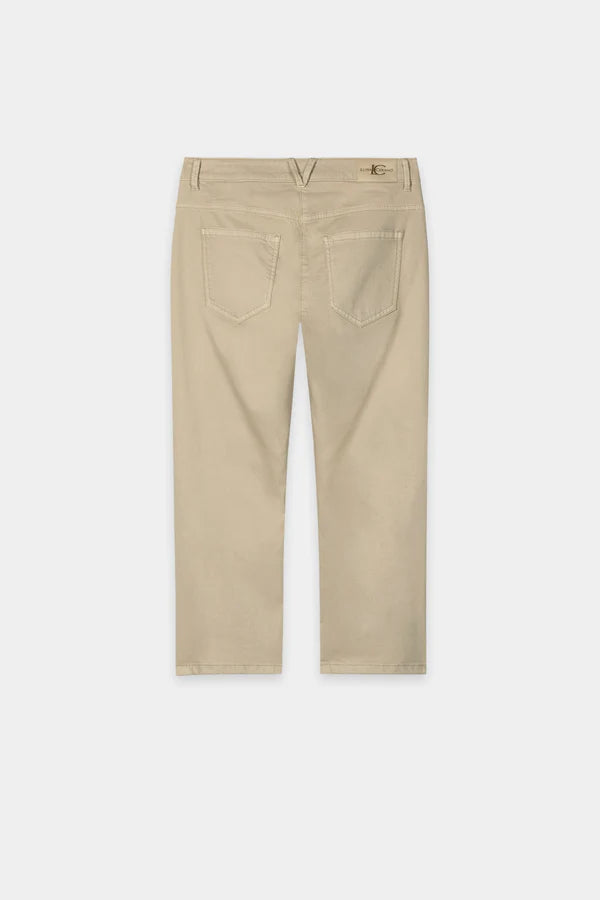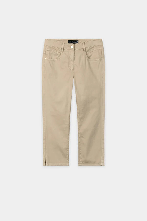 Capri jeans in stretchy colored denim fabric with a five-pocket design. The slit leg ends at the sides ensure greater freedom of movement.