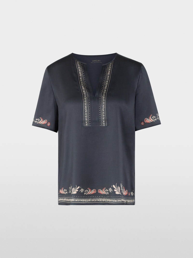 Elegant blouse shirt made from a sophisticated blend of materials: the pure silk front adds a luxurious sheen, while the modal and elastane back ensures a comfortable fit. With a V-neck, half-length sleeves and paisley details, this shirt is a stylish eye-catcher.