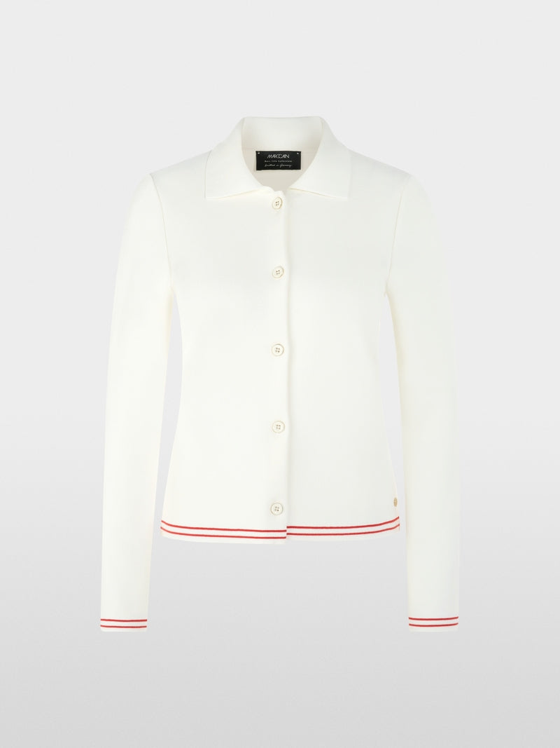 Fine knit cardigan made from a soft viscose blend with a classic button fastening. Contrasting stripes add modern accents and give this long-sleeved cardigan a fresh look. Versatile and easy to combine, the lightweight knit is comfortable to wear. This garment is Knitted in Germany: the yarns are knitted on state-of-the-art knitting machines and the materials are finished in Germany.