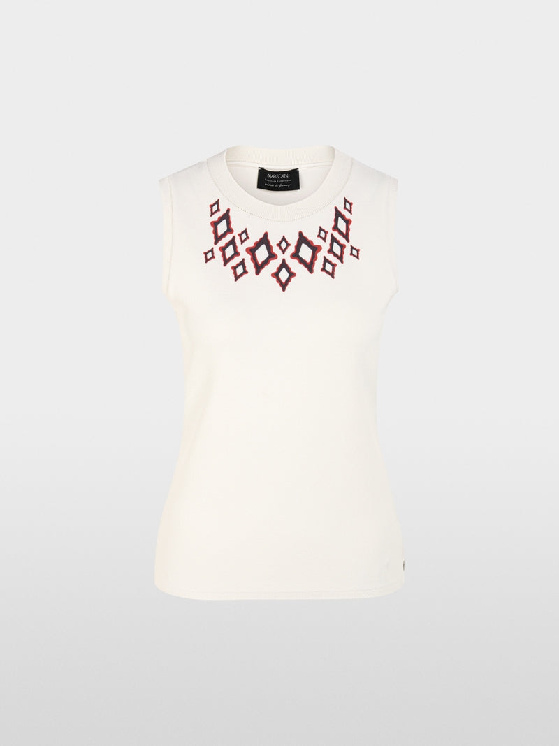 Figure-hugging top made from soft viscose stretch in a fine knit. Sleeveless with a classic round neckline and tailored fit, it emphasises the silhouette. Printed diamonds add elegant details and make this item a versatile piece. This top is Knitted in Germany: the yarns are knitted on state-of-the-art knitting machines and the materials are finished in Germany.
