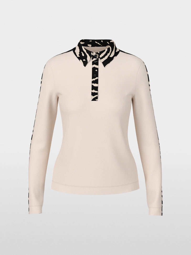Long-sleeved polo shirt with a figure-hugging fit, featuring chic animal print details at various places. Further highlights include the collar and the small row of buttons. The soft ribbed knit cotton blend feels comfortable against the skin and is stretchy. This makes the shirt a perfect basic.