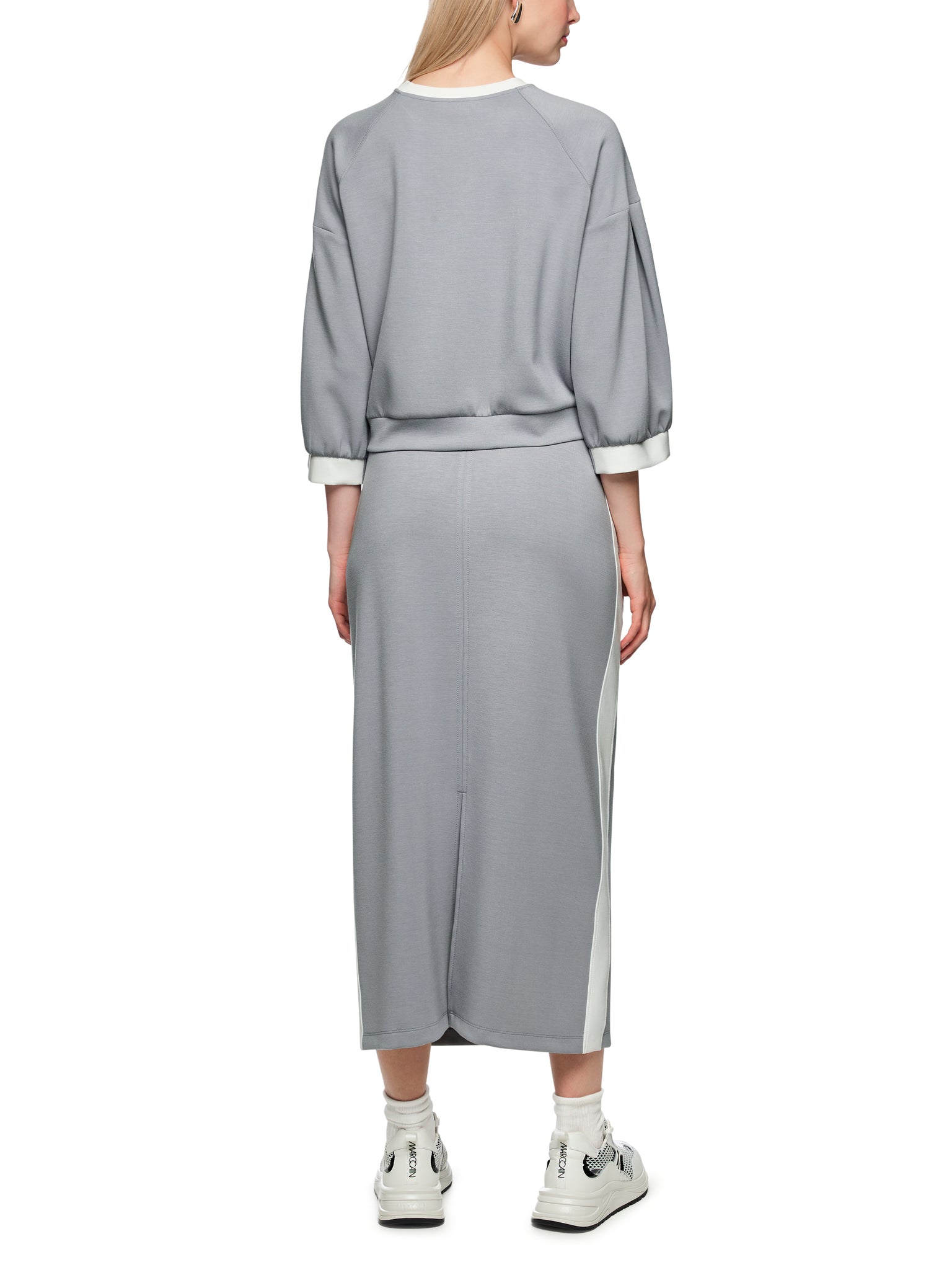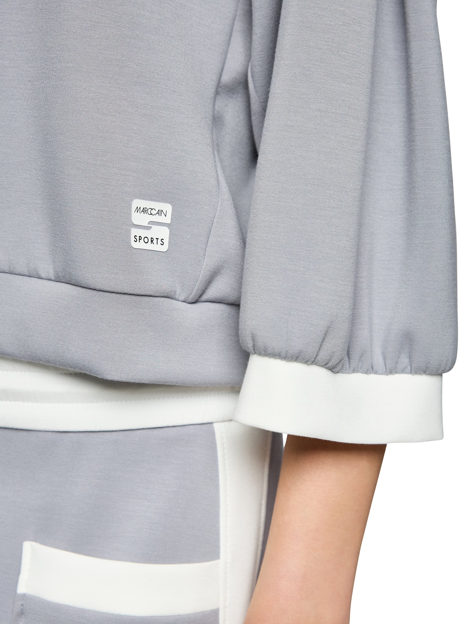 This sweatshirt impresses with its ultra-soft material blend, which feels pleasantly soft against the skin. It has a loose fit and wide sleeves, which are slightly cropped to a casual 3/4 length. The boxy cut and pleats give the sleeves a balloon-like effect. The shoulders are dropped and the sweatshirt is embellished with contrasting stitching and a Marc Cain Sports logo. The perfect companion for relaxed days.