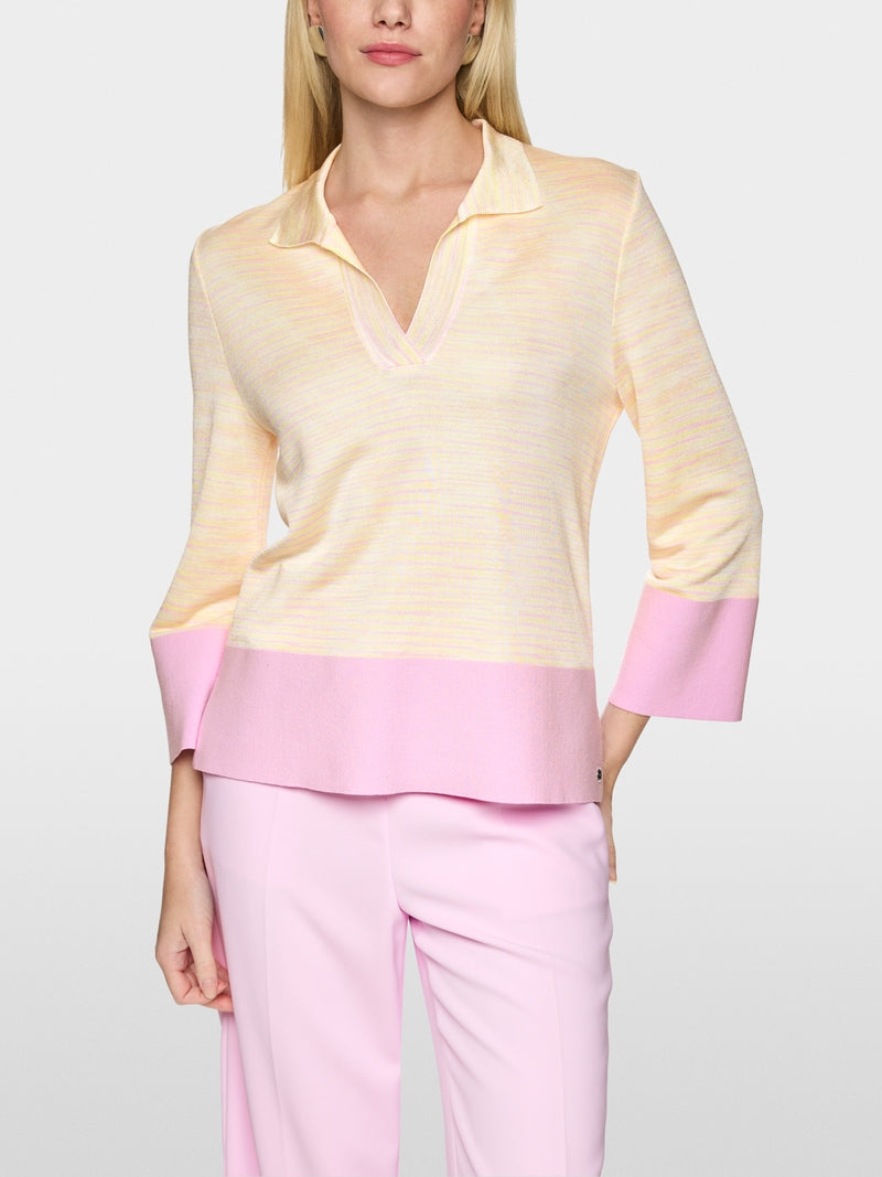 Fine knit jumper made from a soft viscose blend with organic cotton for natural comfort. The loose-fitting style features slightly flared hems and elegant side slits. The crossover V-neck with collar gives the two-tone design a modern touch. This garment is ‘Knitted in Germany’: the yarns are knitted on state-of-the-art knitting machines and the materials are finished in Germany.