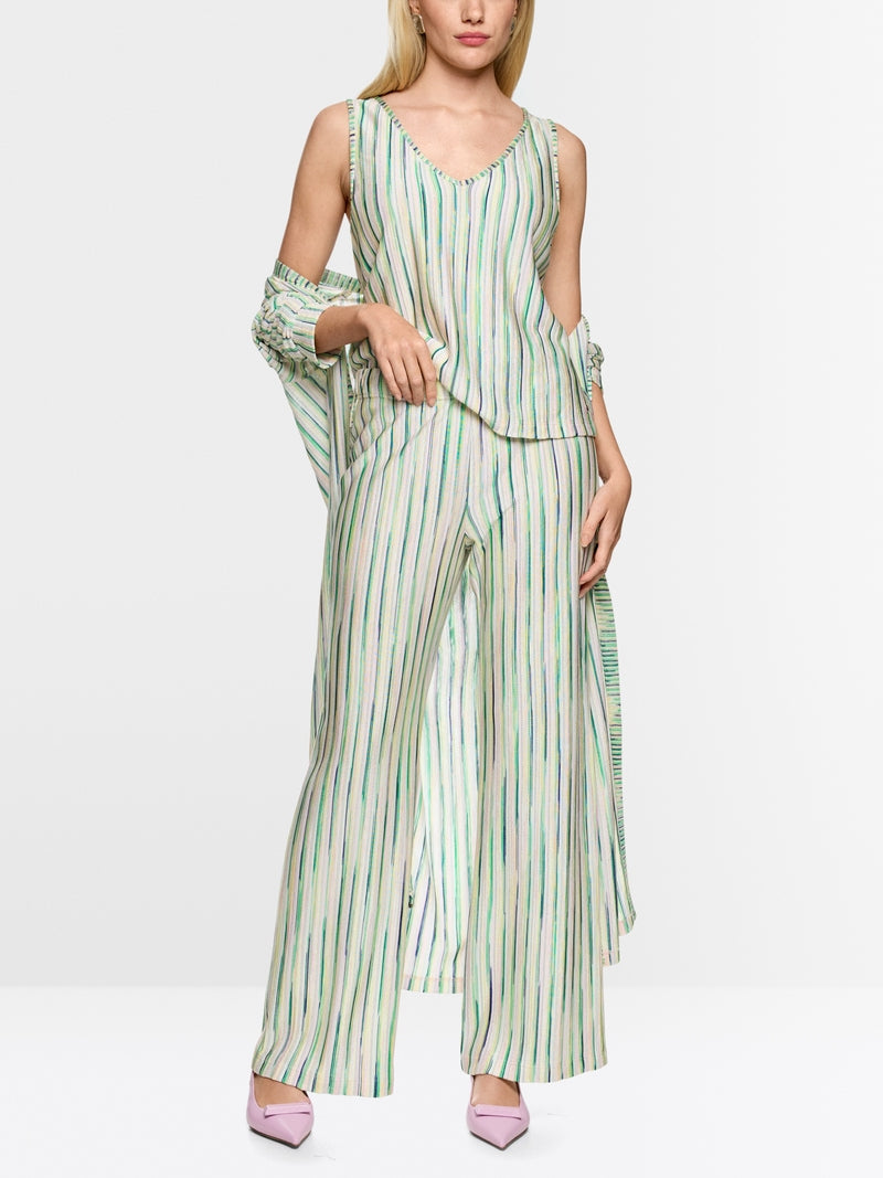 Elegant fine knit top made from a soft viscose blend with delicate lurex yarn for an elegant sheen. The V-neck and slightly fitted shape emphasise the feminine silhouette. Side slits ensure comfortable freedom of movement. The sleeveless, multicoloured top can be combined in many ways. This garment is ‘Knitted in Germany’: the yarns are knitted on state-of-the-art knitting machines and the materials are finished in Germany.