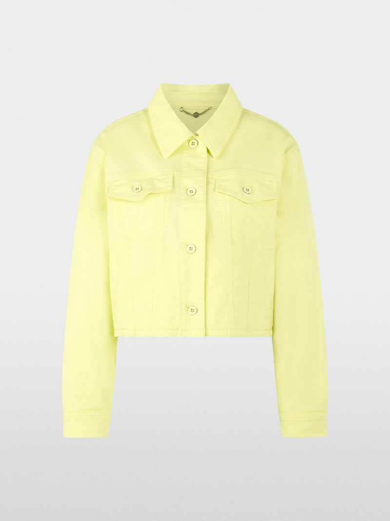 Modern, short denim jacket made from cotton with a small amount of elastane for a comfortable fit. The slightly longer, loose cut at the back creates a feminine silhouette. With side pockets and enamelled, colour-coordinated buttons for a harmonious look.