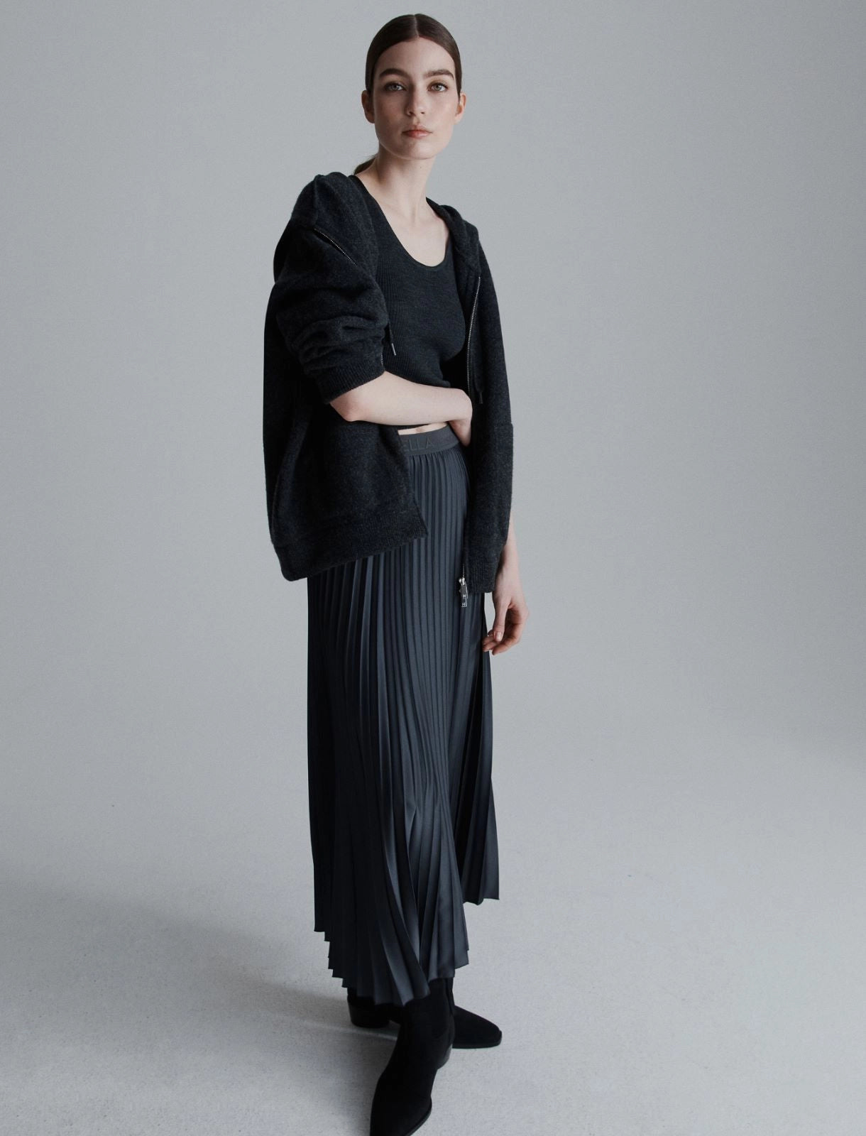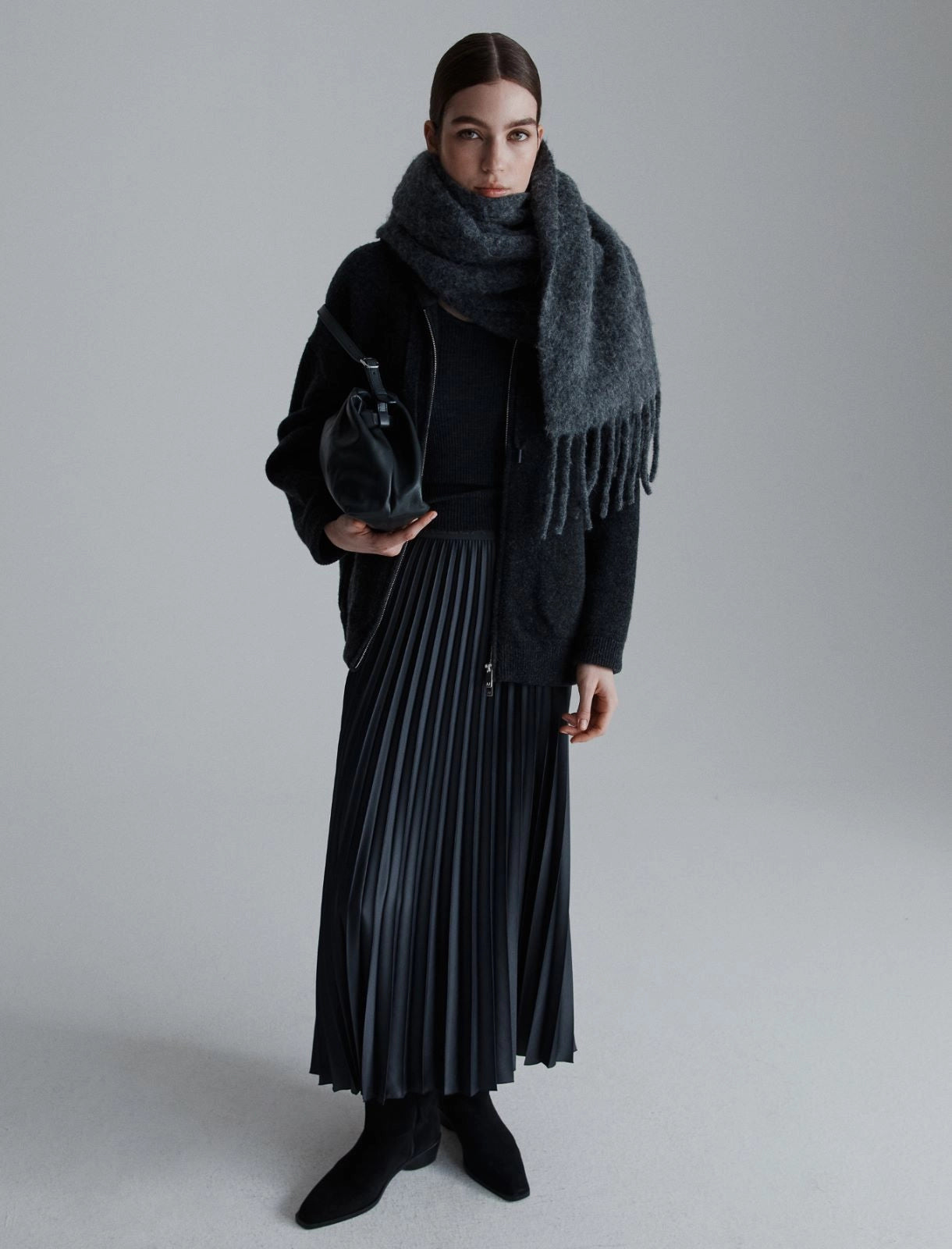 The elegant plissé-pleated pattern exudes all-feminine grace for the winter season, especially when paired with fluffy sweaters and boots. Flawless, every single time.