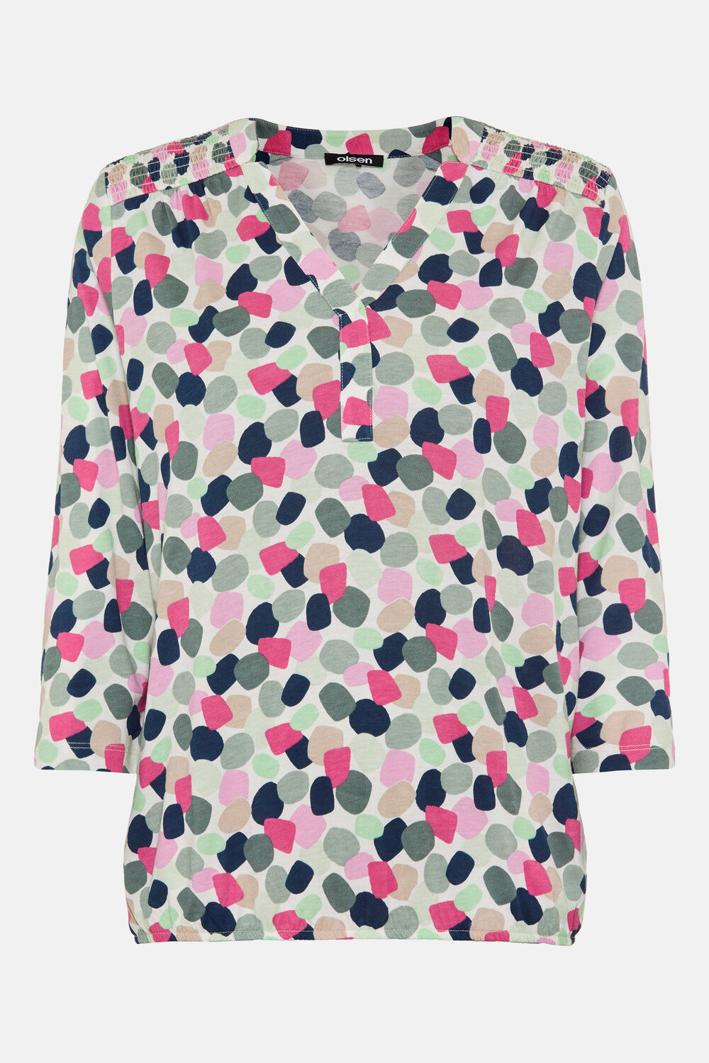A touch of lightness: This long-sleeved shirt inspires with its flowing drape and feminine tunic neckline. The delicate all-over design adds a playful touch to the design, while the elasticated waistband ensures a comfortable fit. Made from a soft cotton-modal blend, it offers maximum comfort and a pleasantly smooth skin feel. Cut in the wide Olsen "Clara" fit for a relaxed silhouette. Another plus point: TENCEL™ modal fibers support long-lasting softness and are obtained from the natural raw material wood. TENCEL™ is a brand of Lenzing AG.