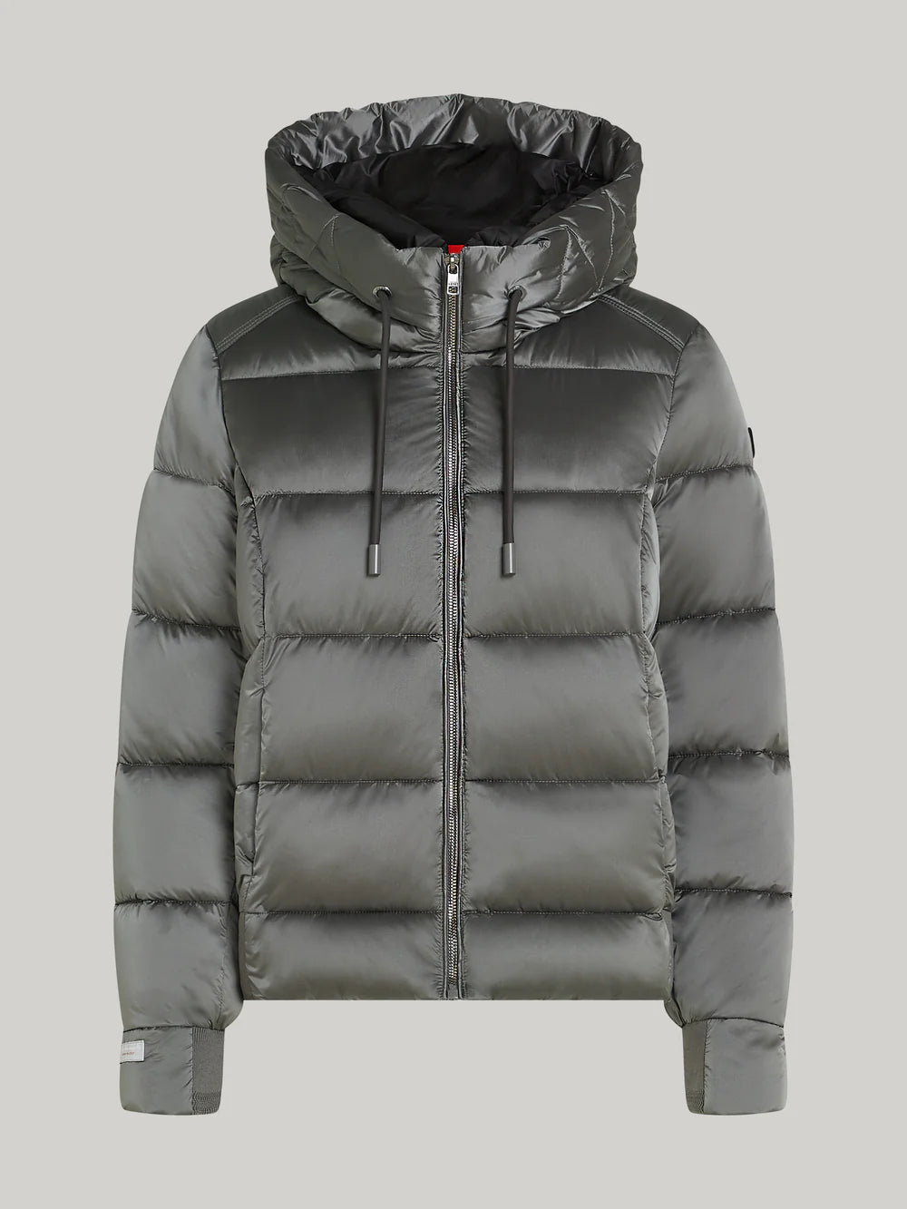 The GENEVE is made of a shiny ripstop fabric and filled with imitation down made of recycled polyester. Bomber details like the rib knit at cuffs and hem are characteristic for this jacket.