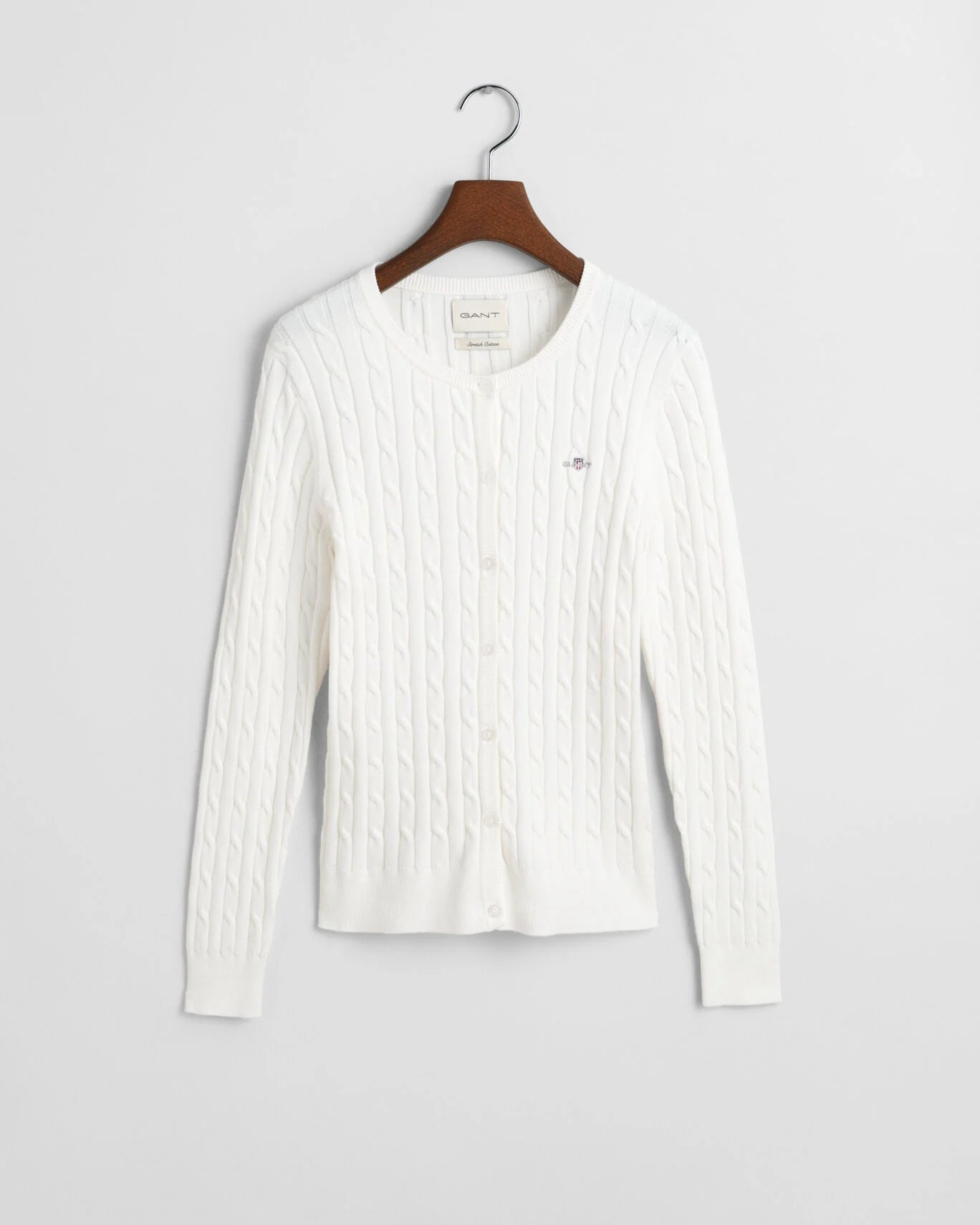 An American sportswear classic, the cable knit cardigan has roots with the Aran Islands and Irish fisherman, but has been adored by everyone from Hollywood film stars to boarding school students around the world. Crafted from a soft cotton blend for a slim yet stretchy fit, our version keeps it crisp and versatile with ribbed details, a crew neck, and our signature shield graphic embroidered at the chest. Plus, in a range of neutrals and vibrant seasonal hues, you can justify one in every color.