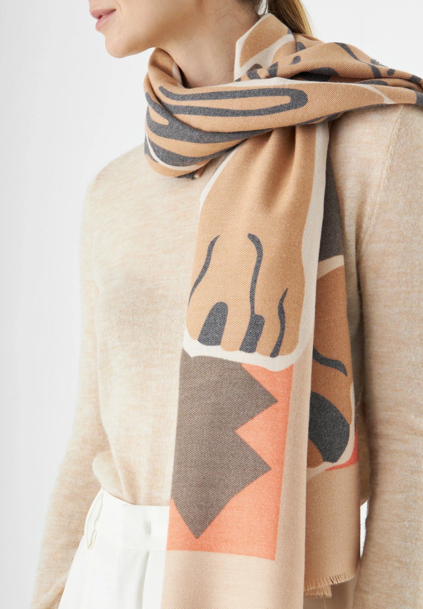 Animal scarves are the ultimate statement piece. Especially when they're as beautifully exotic as this soft scarf with a decorative XL tiger. If you want the tiger to be seen in its full size, wear the scarf draped over your shoulders like a shawl. The scarf is made from our winter bestseller #10 CASHMERE TOUCH. A high-quality blend of viscose and polyester, it combines the benefits of cellulose and synthetic fibers. It's as soft as cashmere, very cuddly, warm, and voluminous.
