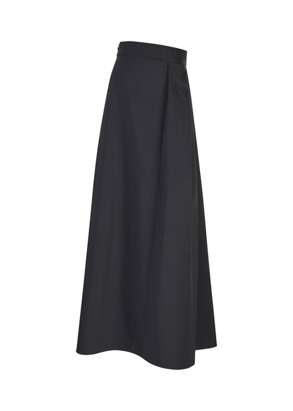 Cutting-edge casual chic: this stylish A-line skirt made of innovative Japanese stretch taffeta is a great piece for any wardrobe. It can be combined in a variety of ways and is suitable for a wide range of styles – from everyday to events. RIANISTAS wear it with a transparent blouse made of Black Blossom tulle and shiny leather boots, for example.