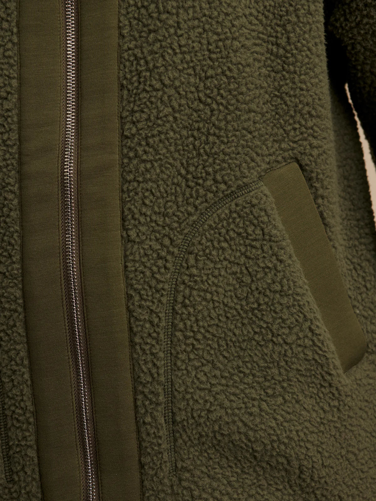 Layer up in the Fey hooded fleece for walks in colder temperatures or relaxed wear inside. Crafted from soft fleece patched with our signature DoubleSoft® fabric, it offers warmth and comfort. The curved hem and soft sleeve shape ensure a flattering fit. The design is complete with contrast details, dye-to-match drawcords, and Varley-branded zip pullers, while large pockets add functionality.