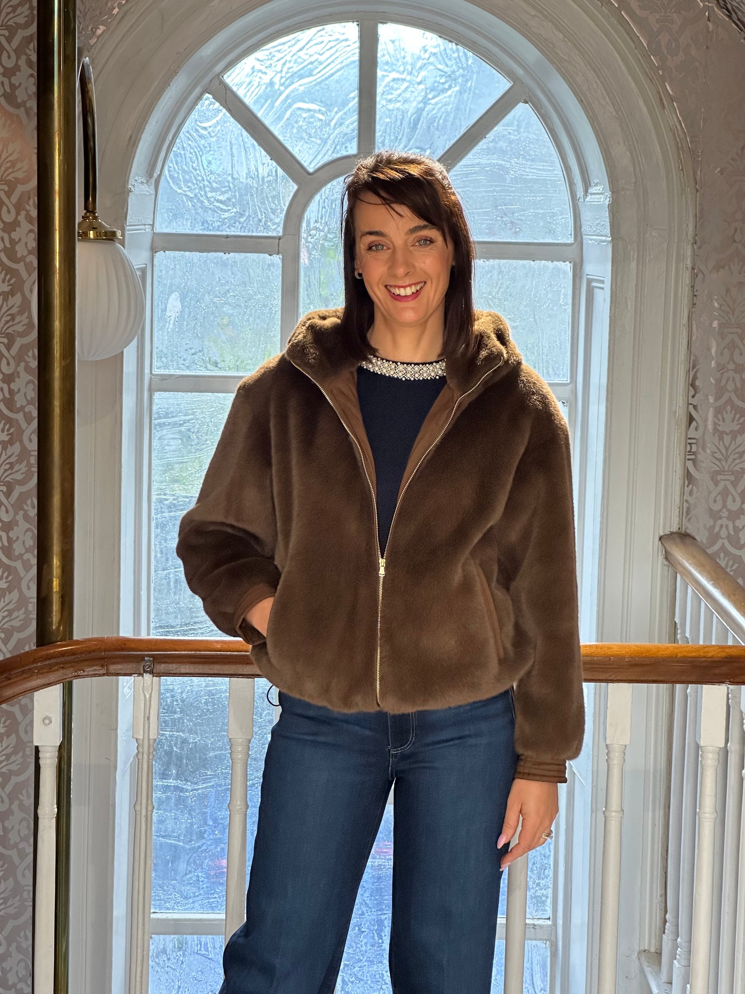 Lined bomber jacket in mink-look soft fabric with light internal padding