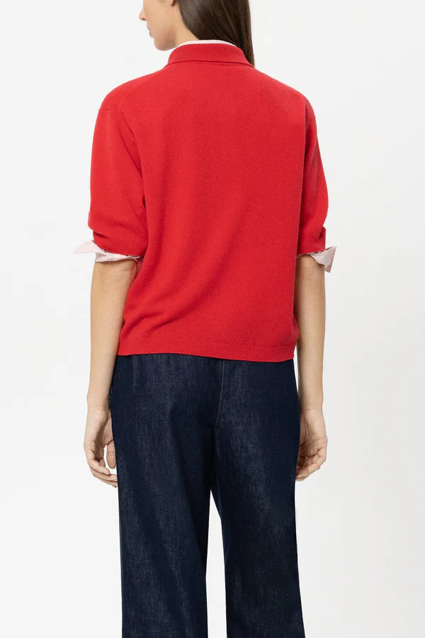 Casual half-sleeved sweater made from an elegant, finely knitted cashmere blend with a ribbed collar and dropped shoulder. The button placket with eye-catching decorative metal buttons is a real eye-catcher.