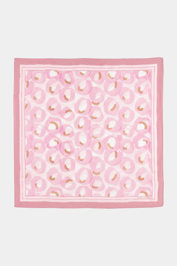 Rectangular scarf made from pure silk with a matt sheen and a graphic pattern print. The brand lettering is discreetly woven into the outer edge.