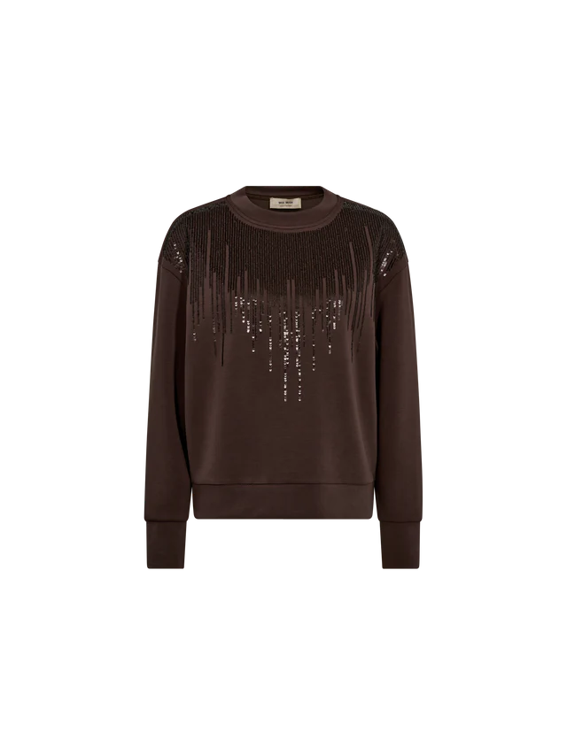 This relaxed-fit sweatshirt is designed with a classic O-neck, blending casual style with a glamorous twist. The shimmering embellished front adds a touch of sparkle, making it a standout piece for the colder months. Perfect for layering, it pairs effortlessly with tailored trousers or a sleek skirt for a cosy yet chic autumn/winter ensemble.