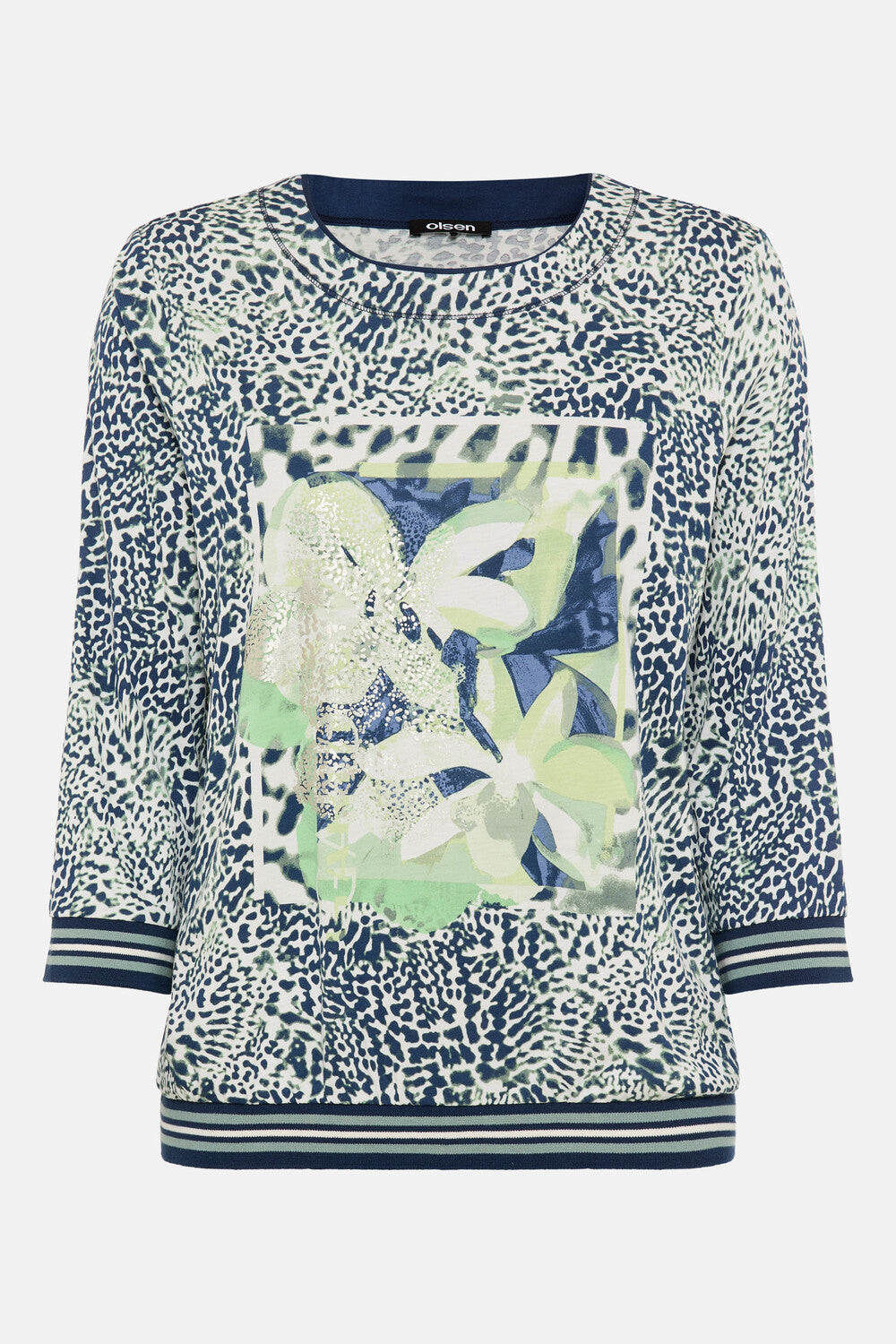 A feminine everyday favourite with a special flair: This shirt presents itself with a stylish all-over design and a flattering tunic neckline. The 3/4 sleeves add lightness to the design, making it ideal for transitional looks. The flowing viscose-elastane material ensures a wonderfully soft feel and a beautiful drape. Bonus: This style contains LENZING™ ECOVERO™ viscose, which is obtained from certified or controlled wood sources. LENZING™ and ECOVERO™ are trademarks of Lenzing AG.