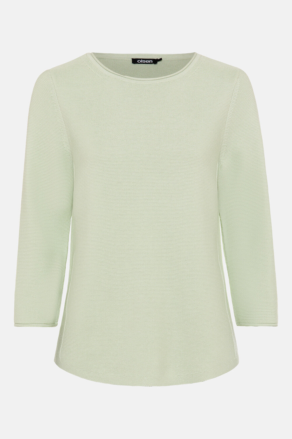 This crew neck sweater is characterized by 3/4 sleeves and a straight cut. With fake stitching on the sides, they give a textured and visually appealing line along the side panels. It is made of a blend of cotton and polyacrylic, offering a combination of classic design and comfort.