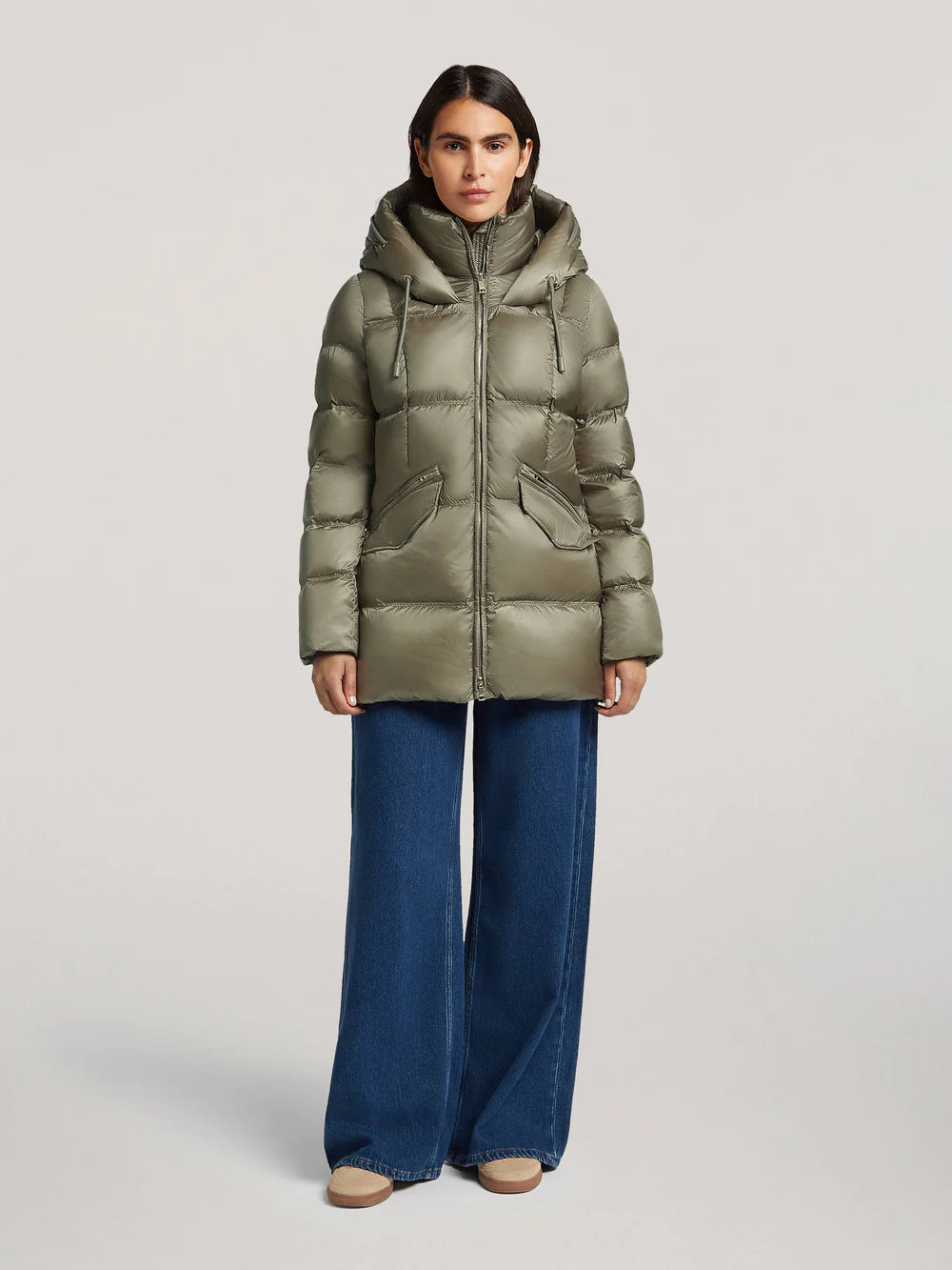 The HELSINKI is made of a shiny light weight fabric and has a special hood design. Filled with 90% down and 10% feathers (RDS certified), this jacket provides very good isolation, but remains lightweight.