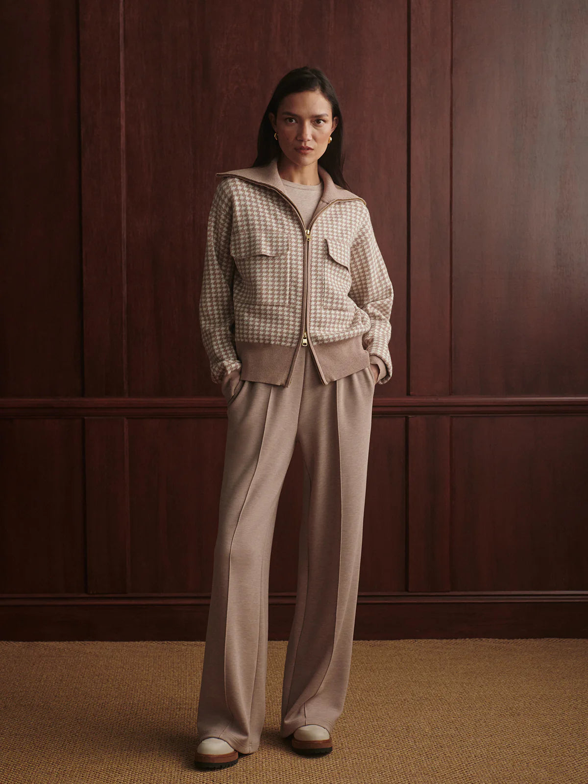 An elevated take on a zip-through knit jacket, the Ablett features an all-over houndstooth jacquard design. Perfect for easy layering, it's finished with a turn-back collar, large patch pockets, and a practical two-way zip.